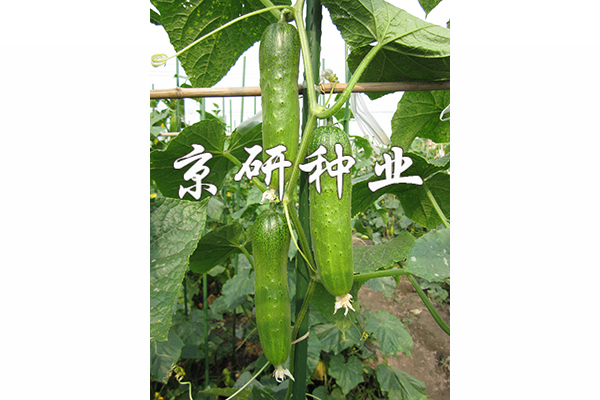 適于春露地和春棚栽培。生長(zhǎng)勢(shì)強(qiáng),葉片大。瓜條短筒形,長(zhǎng)15~17cm,瓜皮白綠色,有光澤,黑刺,瘤中等大小,瓜肉淡綠色,品質(zhì)好。抗霜霉病,中抗白粉病,耐熱。