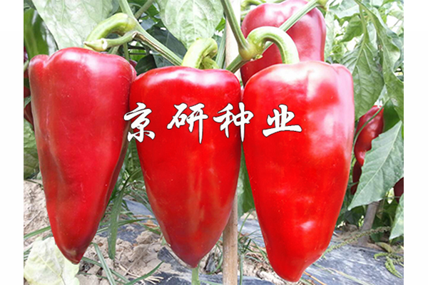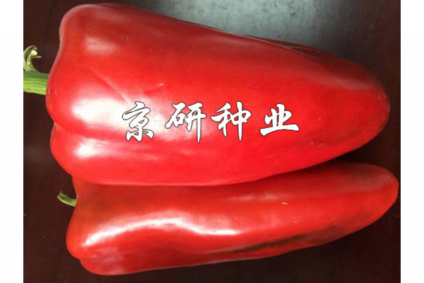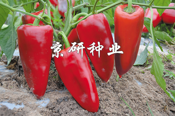 北京市蔬菜研究中心最新育成,屬中熟甜椒一代雜交種,果實圓錐形,果長16.0cm左右,肩寬5.0cm左右,肉厚0.5cm左右,單果重量110-130g左右,青熟期成熟果綠色,果實老熟期暗紅色,味甜,品質佳。適宜云南、四川、貴州等地大棚、露地種植。