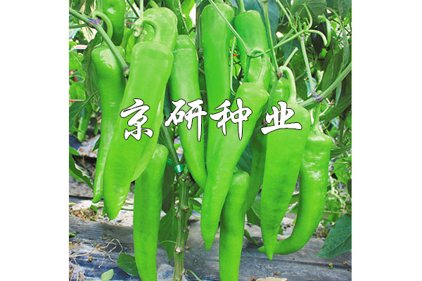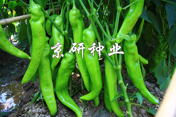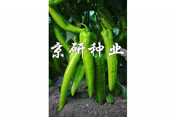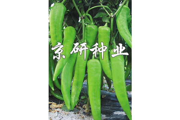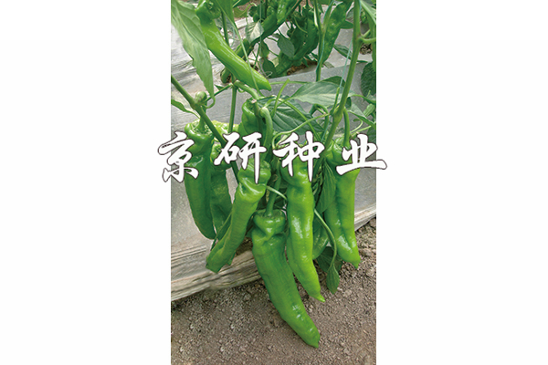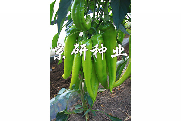 中早熟、豐產辣椒F1,無限生長型;耐低溫,低溫寡照下座果優秀,持續座果能力強;膨果速度快;果實特長牛角形,果基有皺,果型順直。果型為26-28×5.5厘米,單果重100-150克;果皮黃綠色,耐貯運;較耐熱耐濕,抗病毒病和青枯病。適于華北、西北及東北地區保護地種植。