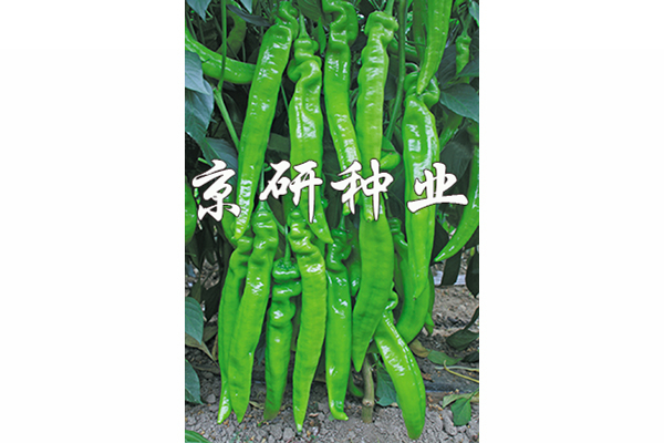 中早熟辣椒F1雜交種,植株開展度中等,生長旺盛。連續座果性強,耐寒性好,果實長牛角形,果型順直,果面光滑。商品果淡綠色,成熟后轉紅色。在正常溫度下,長度可達24-30cm,直徑4.8cm左右,外表光亮,商品性好。單果重100-150g,辣味中。抗病毒病能力強。適合秋冬茬、早春茬保護地以及日光溫室一大茬種植。