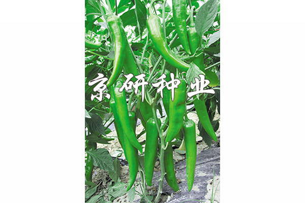 中熟、高產(chǎn)辣椒F1雜交種, 植株生長(zhǎng)健壯,果實(shí)長(zhǎng)粗羊角形,果形順直,肉厚質(zhì)脆腔小;果實(shí)縱長(zhǎng)為23cm左右,果肩寬約3.5cm,單果重90g左右;辣味適中,青熟果色深綠,老熟紅果色鮮艷,紅熟后不易變軟,耐貯運(yùn),持續(xù)座果能力強(qiáng),商品率高;高抗病毒病和青枯病、葉斑病;耐熱耐濕,越夏栽培結(jié)實(shí)率強(qiáng),適宜露地及秋延后種植。