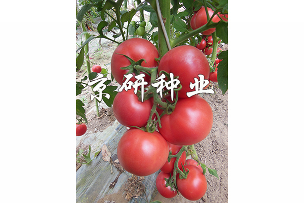 粉果番茄雜交種,中熟,無限生長型,粉紅色中大果,果實圓形,每穗坐果數3-5個,平均單果重260克,單果能達400克,穩產豐產。具有抗番茄黃化曲葉病毒病Ty1和Ty3a基因位點、抗番茄化葉病毒病Tm2a基因位點、抗根結線蟲病Mi基因位點、抗葉霉病cf9基因位點,適合春秋保護地種植。栽培管理同常規,每穗4個果為宜。