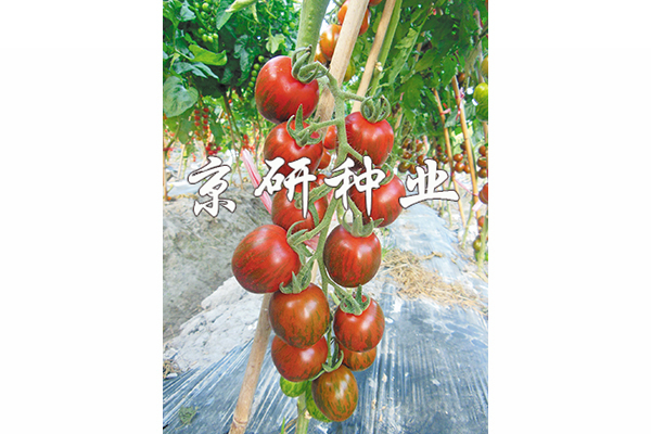 高端彩色早熟櫻桃類番茄雜交種,無限生長型,果實橢圓,暗紅紋底間綠色條紋,彩色獨特,色澤亮,萼片美觀,口味甜,風味濃郁。每穗坐果數10-16個,平均單果重25克,硬度高,既可單果采收也可成串采收,連續坐果能力強,豐產穩產。具有抗番茄黃化曲葉病毒病Ty1基因位點、抗根結線蟲病Mi基因位點,適合春秋保護地種植。