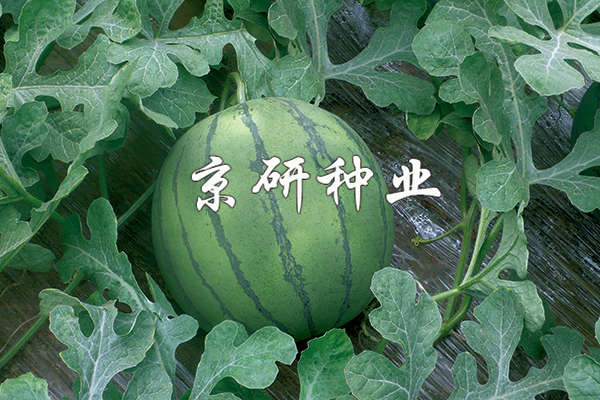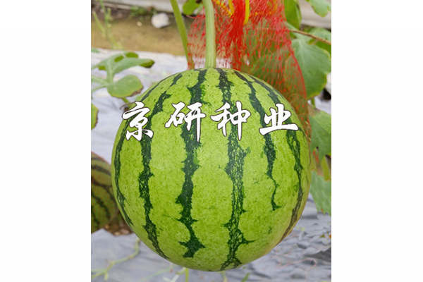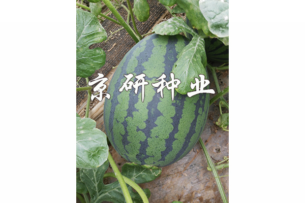最新育成的早熟、優質、耐裂西瓜新品種。該品種果實發育期30天左右,全生育期90天左右。植株生長勢強,座果性好。果實短橢圓形,深綠底覆蓋墨綠齒條紋,有果霜,外型美觀。單瓜重6公斤左右,中心可溶性固形物含量高的可達12%以上,大紅肉,剖面均勻,不易水脫,肉質脆爽,口感佳。皮薄,耐裂,耐儲運,破損率低,商品率高。適于早熟、優質栽培及遠距離運輸。 主要栽培措施: 1. 選沙壤土種植為佳,并要求底肥充足。 2. 嫁接苗移栽時以四葉一心以上大苗為好,有利于提高西瓜坐果性。 3. 700株左右/畝,三蔓整枝,以留第二、三道瓜為好,授粉前期注意保溫、增加光照。 4. 果實成熟期不宜澆水,九成熟采摘為宜。 5. 重茬及保護地栽培,最好選用“京研”牌京欣砧木系列品種嫁接。 適應性: 適合華北、東北、華東、云南等地區保護地與露地早春栽培。北京地區露地播種3月20日-4月10日,請結合當地氣候特點、種植方式與供應期科學合理選擇最佳播種期與定植期。